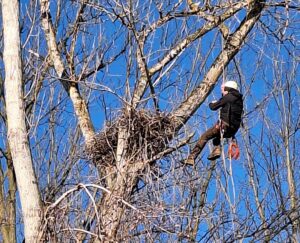 În 2024, am consolidat unul dintre cuiburile deteriorate, sporindu-i stabilitatea cu ajutorul unui suport metalic.